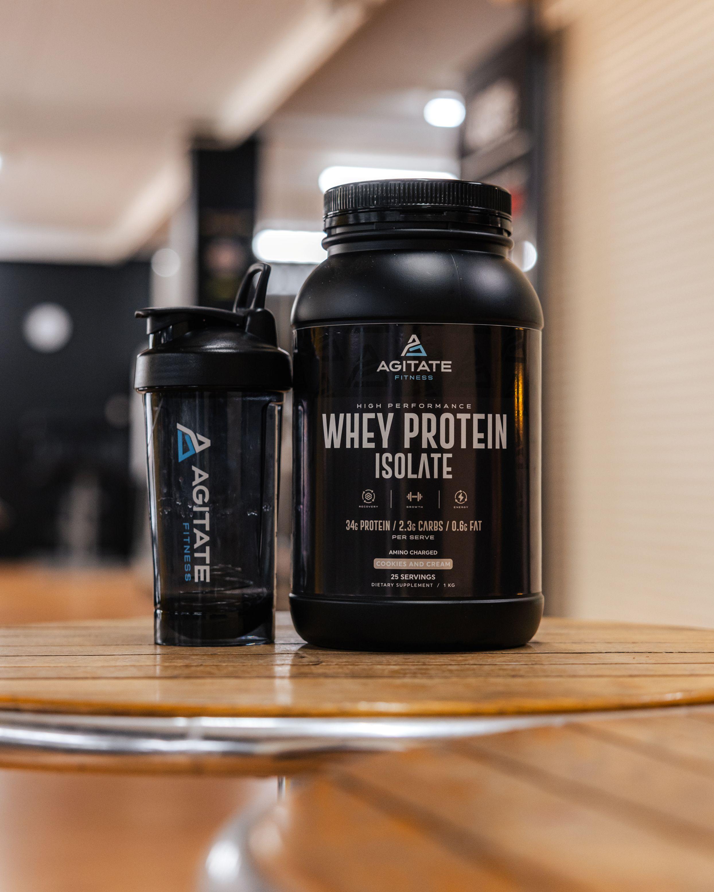 We offer two premium fitness supplements: pre workout and whey protein isolate.